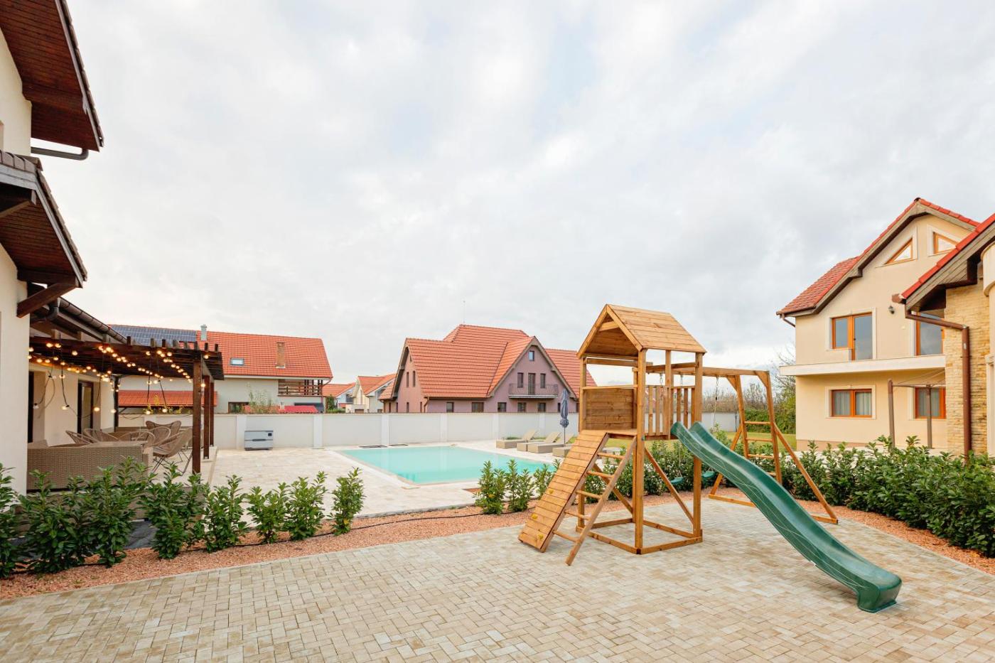 Located just 7.2 km from Citadel of Oradea, Pensiunea CARMEL features accommodation in Baile Felix with access to free bikes, a bar, as well as a shared kitchen. This farm stay features a private pool, a garden and free private parking. Outdoor seating is also available at the farm stay.