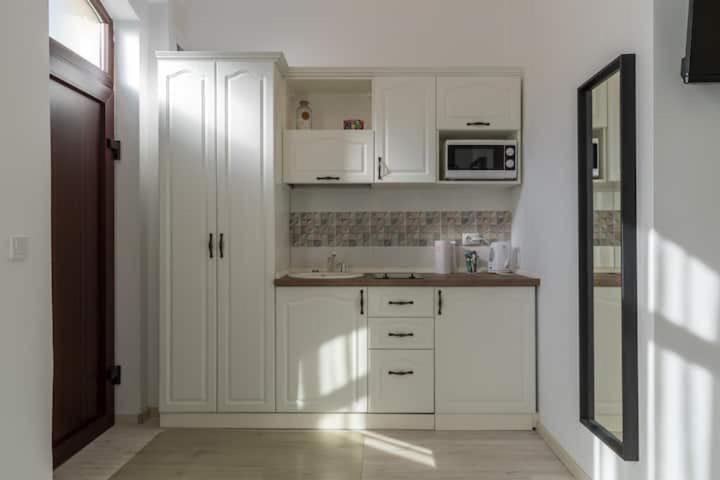 King Studio. Guests can make meals in the kitchen that is fitted with a stovetop, a refrigerator, kitchenware and an oven. The studio offers air conditioning, a washing machine, a balcony with garden views as well as a private bathroom featuring a shower. The unit offers 2 beds.