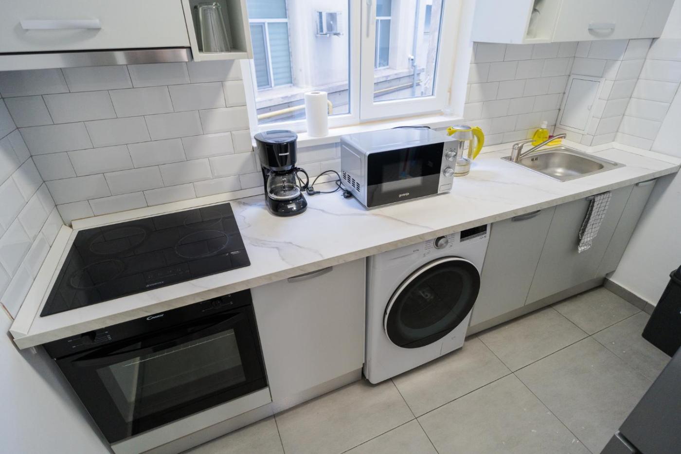 Two-Bedroom Apartment. Boasting a private entrance, this air-conditioned apartment features 1 living room, 2 separate bedrooms and 2 bathrooms with a walk-in shower and a hairdryer. In the well-fitted kitchen, guests will find a stovetop, a refrigerator, kitchenware and an oven. The apartment has parquet floors, a seating area with a flat-screen TV with cable channels, a washing machine, a tea and coffee maker, as well as a wardrobe. The unit has 3 beds.