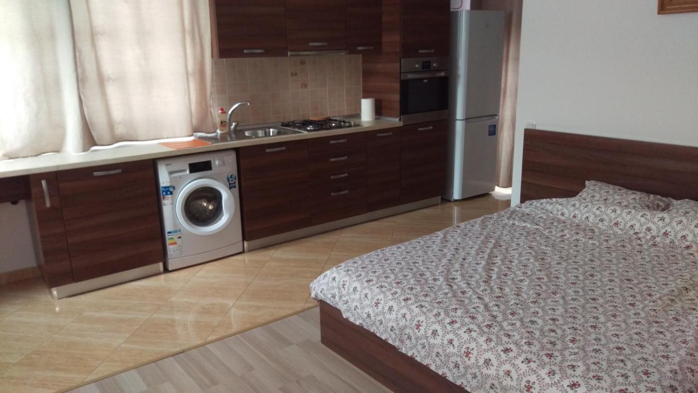 Studio Apartment. The air-conditioned apartment features 1 bedroom and 1 bathroom with a bath and a hairdryer. A kitchen equipped with a refrigerator, a microwave and a tea and coffee maker is available for cooking and storing food. Featuring a terrace, this apartment also provides a washing machine, soundproof walls and a flat-screen TV with cable channels. The unit offers 2 beds.