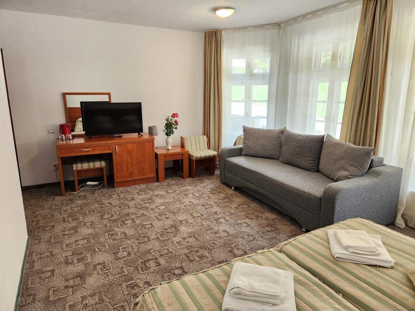 The bright rooms of Casa Minerva come carpeted floors, a flat-screen TV and a refrigerator. Each room includes a private bathroom with a shower. Some rooms offer views of the Caraiman Peak and Heroes Cross, while from others guests can see Gârbova Peak.