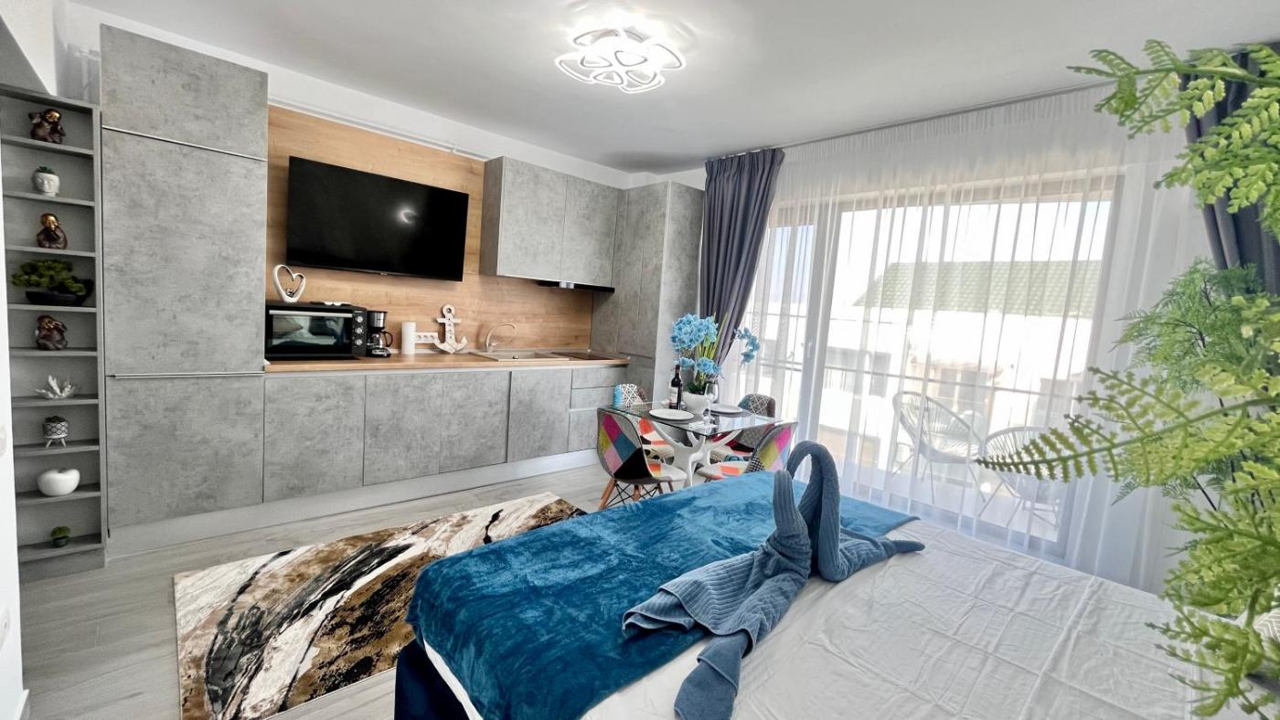 Situated in Mamaia Nord, a few steps from Mamaia Beach and 8.2 km from Siutghiol Lake, Cosmopolitan - Studio pe plaja cu vedere la mare & loc parcare gratis offers a terrace and air conditioning. This property offers access to a balcony and free private parking. The property is non-smoking and is located 14 km from City Park Mall.