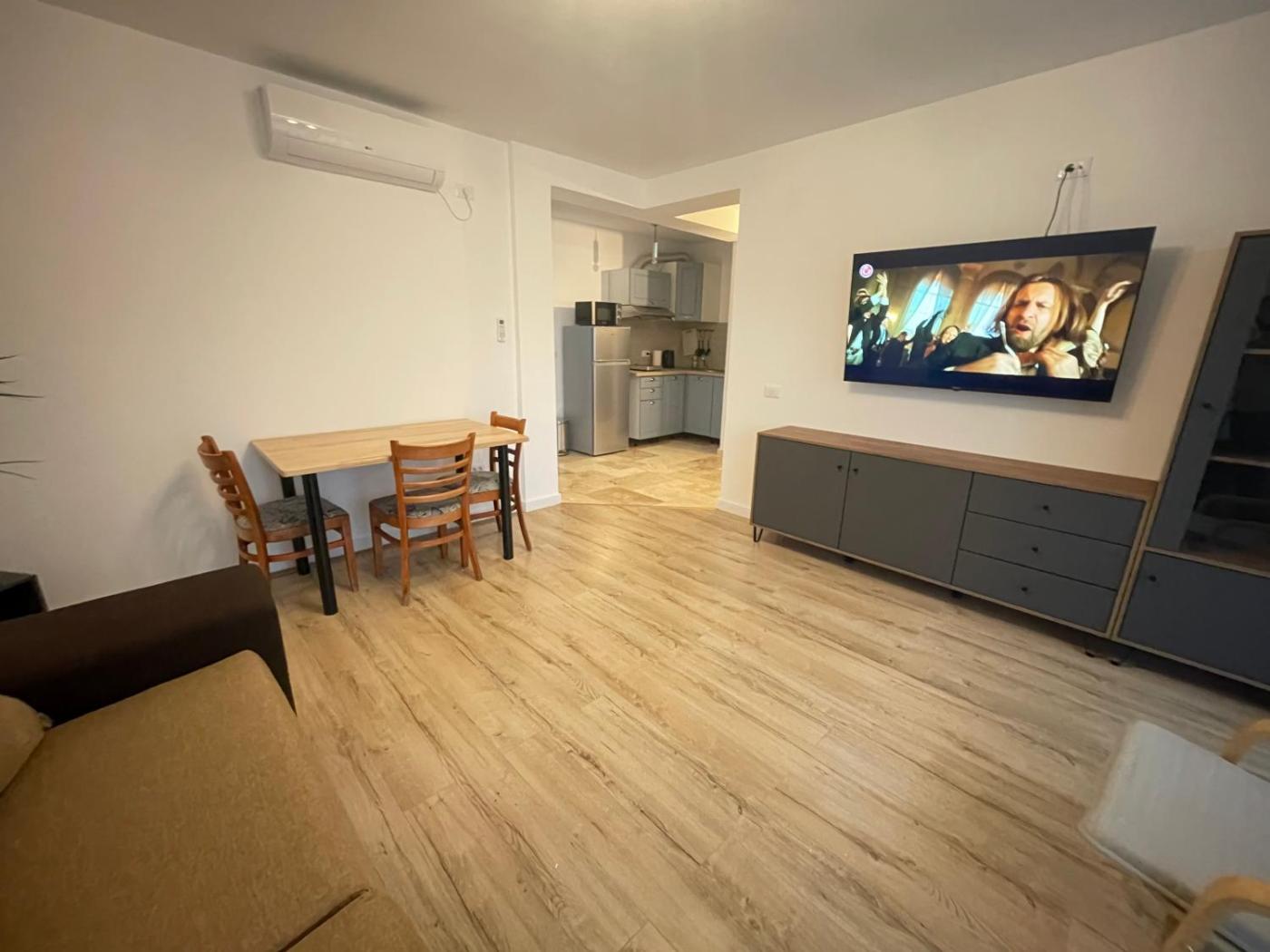 Apartment. This air-conditioned apartment comes with 1 living room, 1 separate bedroom and 1 bathroom with a shower. The well-equipped kitchen has a stovetop, a refrigerator, kitchenware and a microwave. This apartment features a tea and coffee maker, a dining area, a flat-screen TV and a balcony. The unit has 2 beds.