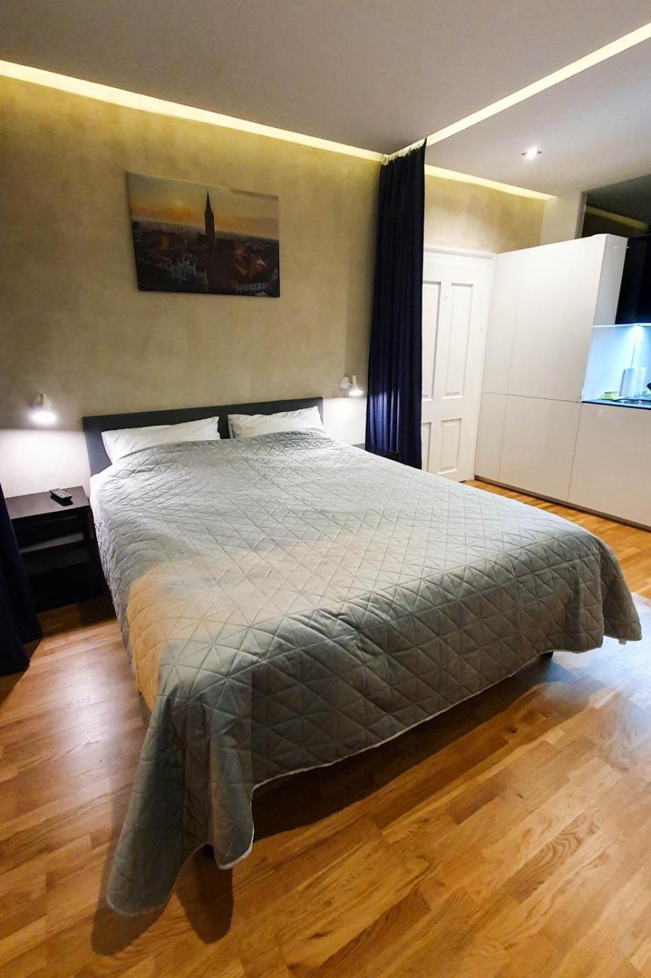 One-Bedroom Apartment. The air-conditioned apartment features 1 bedroom and 1 bathroom with a walk-in shower and a hairdryer. In the fully equipped kitchen, guests will find a stovetop, a refrigerator, kitchenware and a microwave. The apartment provides a washing machine, a tea and coffee maker, a dining area, a flat-screen TV, as well as city views. The unit offers 1 bed.