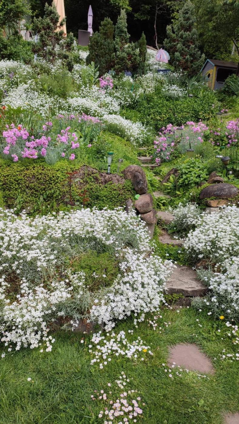 The apartment is equipped with 1 bedroom, 1 bathroom, bed linen, towels, a flat-screen TV with cable channels, a dining area, a fully equipped kitchenette, and a terrace with garden views. Guests can enjoy an ambient stay in their soundproof room with parquet floors and a fireplace. The property has an outdoor dining area.